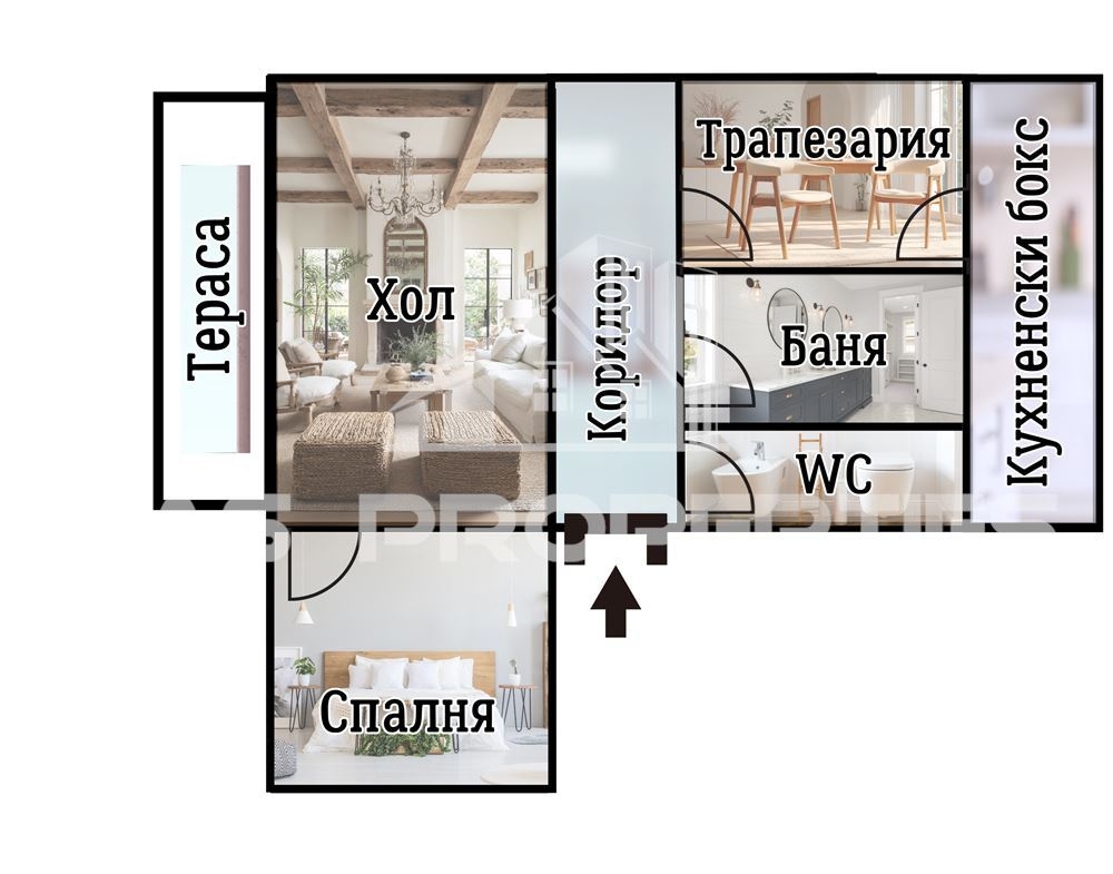 - Просторен хол с голяма тераса
